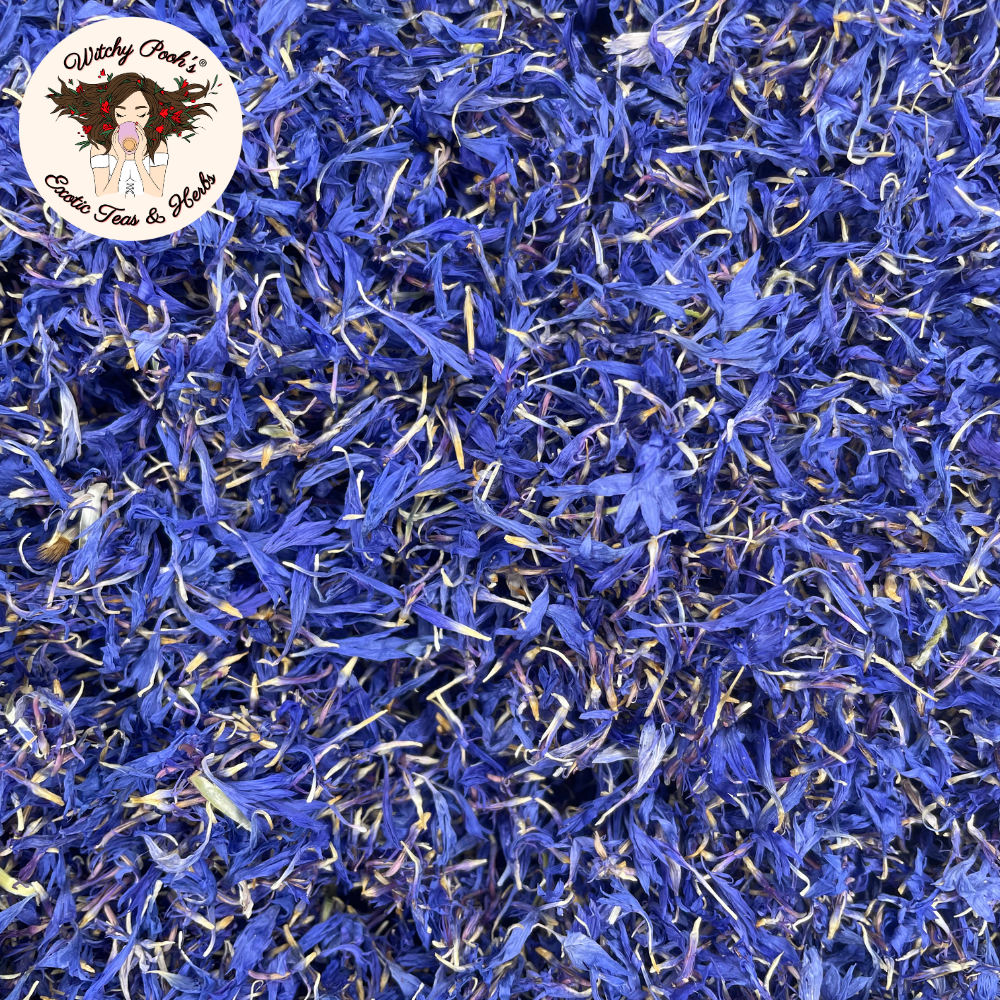 Immerse yourself in the celestial charm of Witchy Pooh’s Cornflower Petal Tea, a caffeine-free infusion of vibrant, loose-leaf cornflower petals (Centaurea cyanus). This enchanting brew offers a delicate, slightly sweet floral flavor with an earthy whisper, blooming into a stunning blueish-purple hue that captivates the senses. Perfect for tranquil morning rituals, whimsical tea gatherings, or twilight meditations, this tea is a radiant treasure for tea enthusiasts and mystical souls.