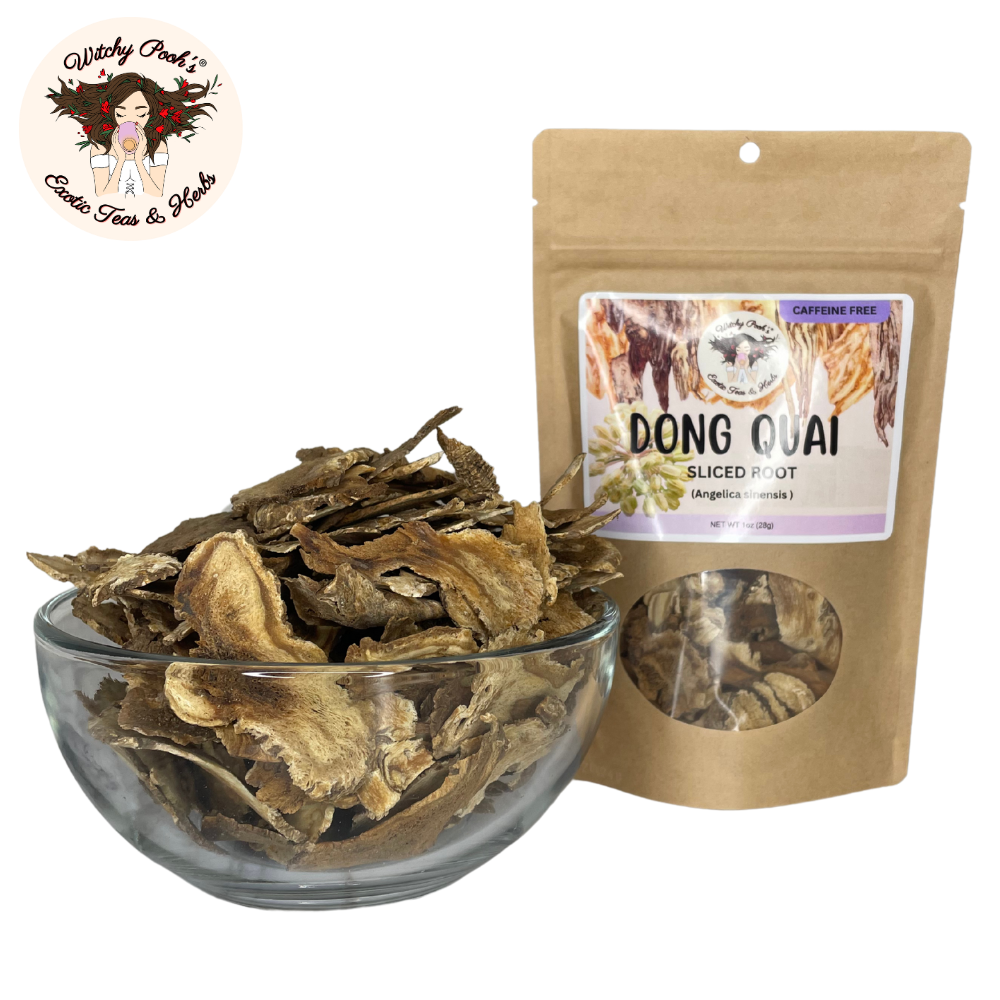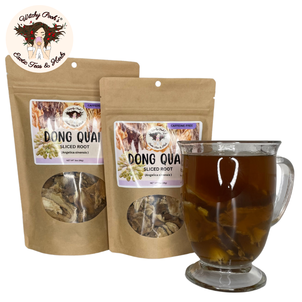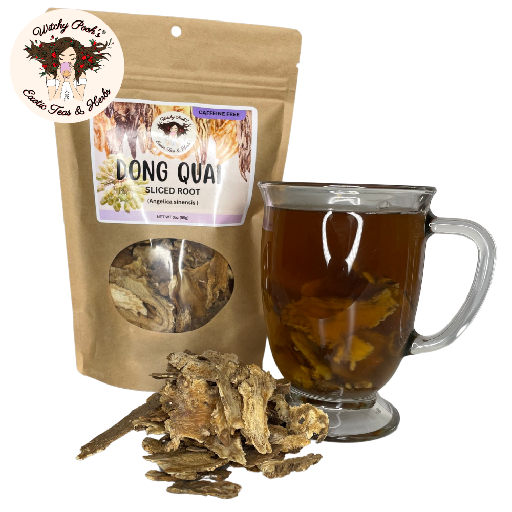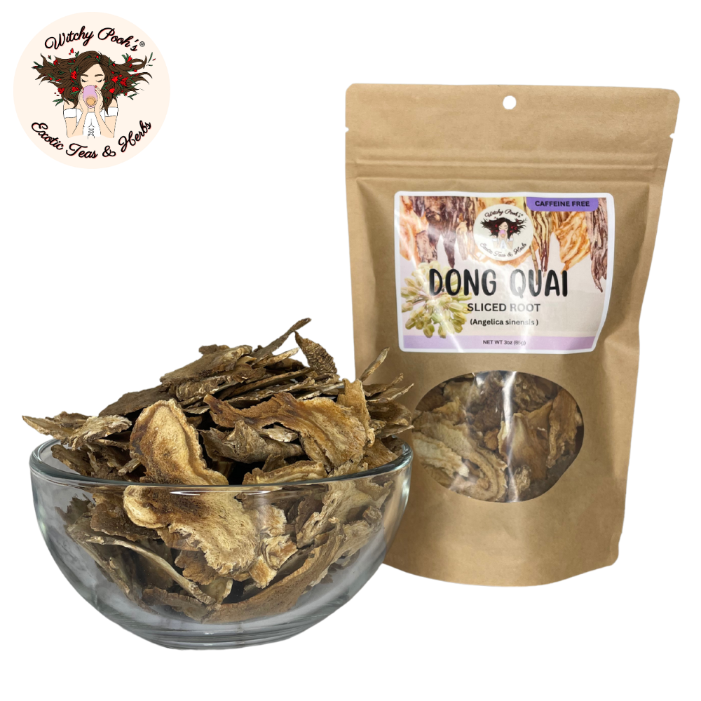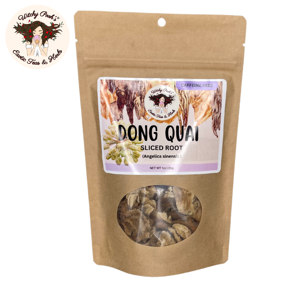Embrace the timeless elegance of Witchy Pooh’s Dong Quai Tea, a caffeine-free infusion crafted from delicately sliced Dong Quai root (Angelica sinensis), lovingly dubbed “female ginseng” for its revered role in Traditional Chinese Medicine. This aromatic brew weaves a warm, earthy flavor with subtle sweet and bitter notes, enveloping you in serenity during morning meditations, quiet afternoons, or moonlit rituals. For over 2,000 years, Dong Quai has been a cornerstone of East Asian traditions, cherished in China, Korea, and Japan for ceremonial brews and women’s rituals symbolizing vitality and grace. Its nickname, “female ginseng,” celebrates its cultural prominence as a nurturing herb, akin to ginseng’s invigorating fame, embodying feminine energy and balance without being botanically related. Today, this enchanting tea captivates—sip it hot with honey to enhance its rich depth, blend with rose or chamomile for a custom infusion, or enjoy chilled for a refreshing, soulful escape. Spiritually, Dong Quai inspires harmony, protection, and feminine power, making it ideal for intention-setting or grounding rituals. Packaged in a rustic kraft paper pouch with a resealable zipper and viewing window, its vibrant slices stay fresh, infusing every scoop with ancient magic. Witchy Pooh’s Dong Quai Tea is more than a beverage—it’s a tribute to sacred traditions, spiritual radiance, and nature’s grace. Perfect for gifting or nurturing your soul, this tea invites you to sip its storied essence and glow with feminine strength. Order now and let Dong Quai’s legendary charm elevate your rituals!