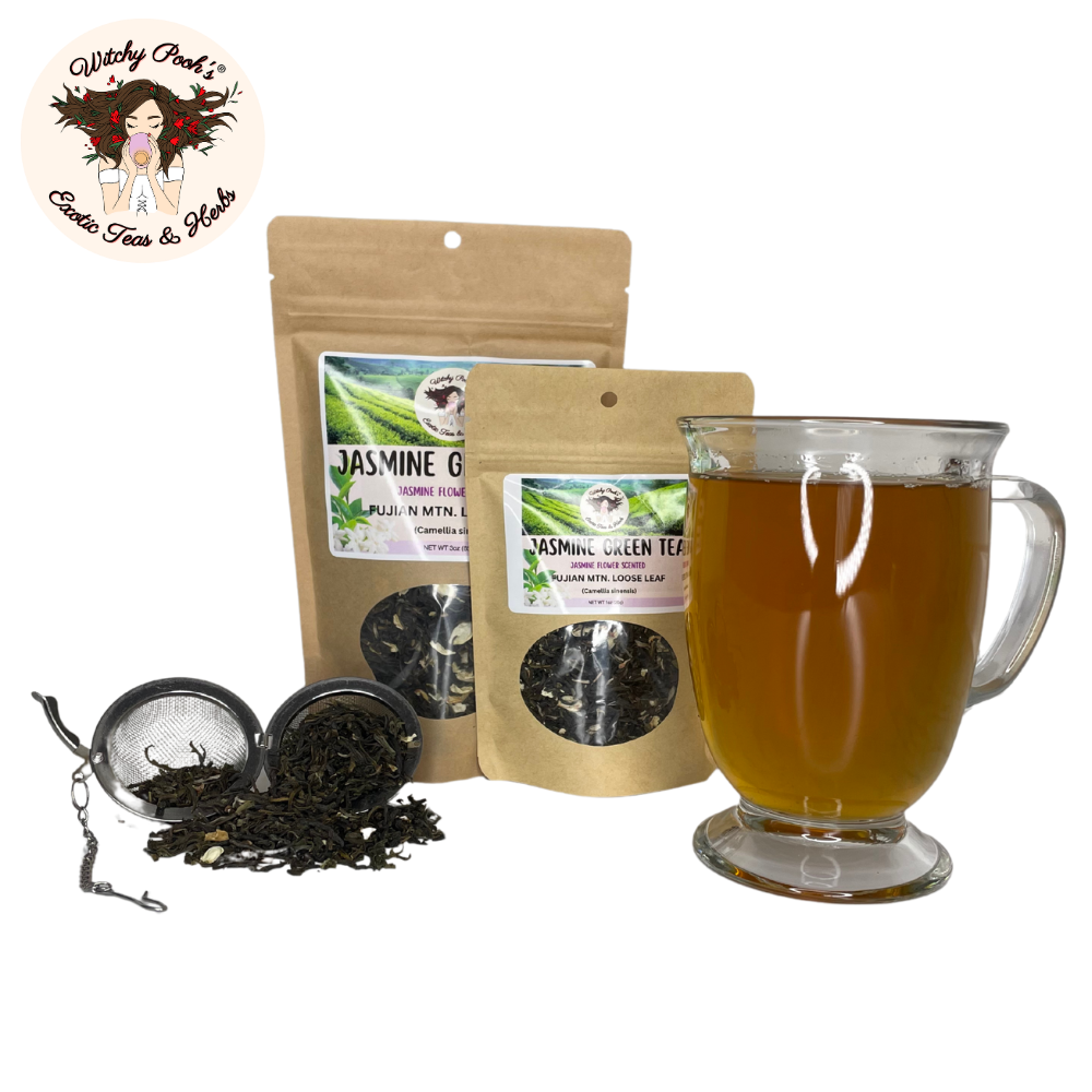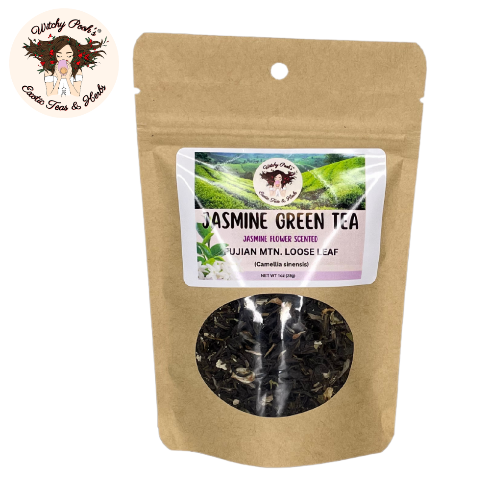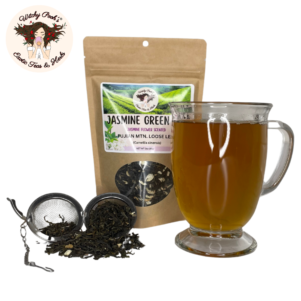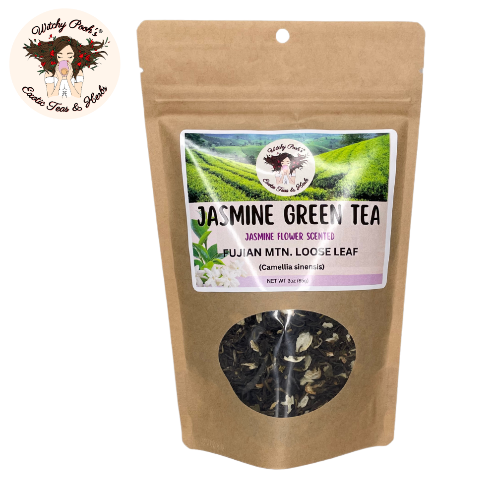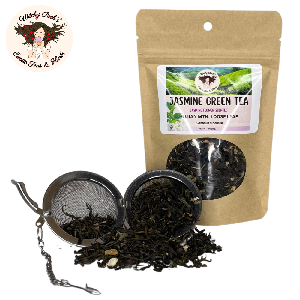 Witchy Pooh’s Jasmine Scented Green Tea is more than a beverage—it’s a legacy of ancient artistry, a spark of spiritual radiance, and a celebration of nature’s finest gifts. Ideal for gifting or elevating your own rituals, this tea invites you to sip deeply and let jasmine’s floral embrace lift your soul. Order now and immerse yourself in the timeless magic of Fujian’s jasmine-kissed mountains!